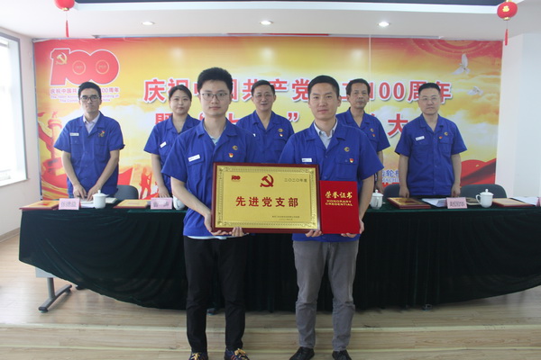 会议分为先进表彰、入党宣誓、纪念大会三阶段进行。公司党委委员、副总经理陈明歧宣读了《关于表彰公司2020年度优秀党员、优秀党务工作者和先进基层党组织的表彰决定》,随后,党委委员们向获得表彰的先进集体和个人颁发了奖牌,参会党员热烈鼓掌表示祝贺。