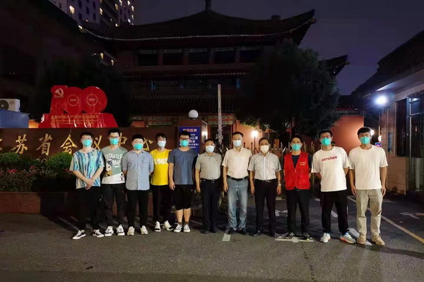 8月14日晚,由于全市防疫工作调整,在钟山宾馆志愿服务的新工医护保障医管控突击队一行8人结束了预定服务任务,新工集团党委副书记吴启宁亲自前往迎接顺利完成任务的志愿突击队员。