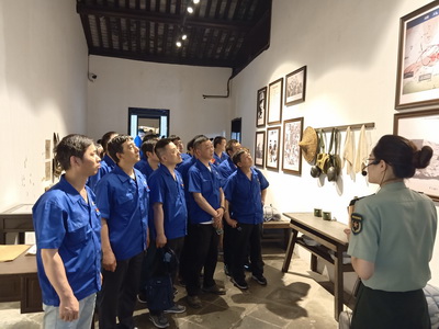 在指挥部旧址前,全体党员以集体宣誓的方式,重温了入党誓词。在讲解员的带领下,同志们参观了新四军江南指挥部旧址,了解了新四军团结协作、坚持抗战的历史。罗忠毅、廖海涛……烈士们舍生忘死抗击日寇的壮烈故事让人动容。在指挥部旧址的天井中,同志们向粟裕同志墓敬献了花篮并鞠躬致敬。随后,在纪念馆广场的国旗下,同志们集中上了一节生动的《初心与抉择》微党课,聆听了新四军战士陆凤英几次面临生死抉择,坚守初心,为革命无私奉献的感人故事。